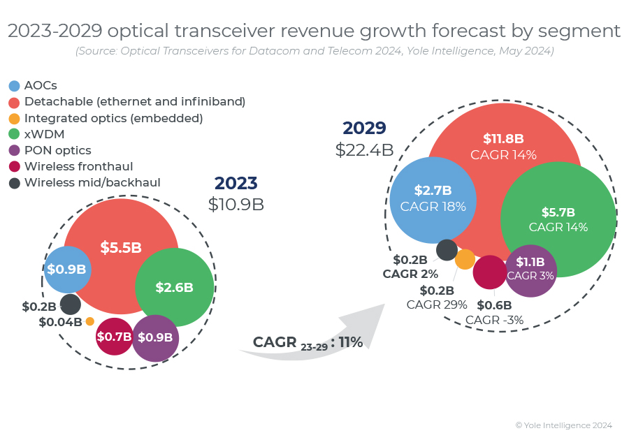 YOLE:2024年,數(shù)通光模塊市場將同比增長45%